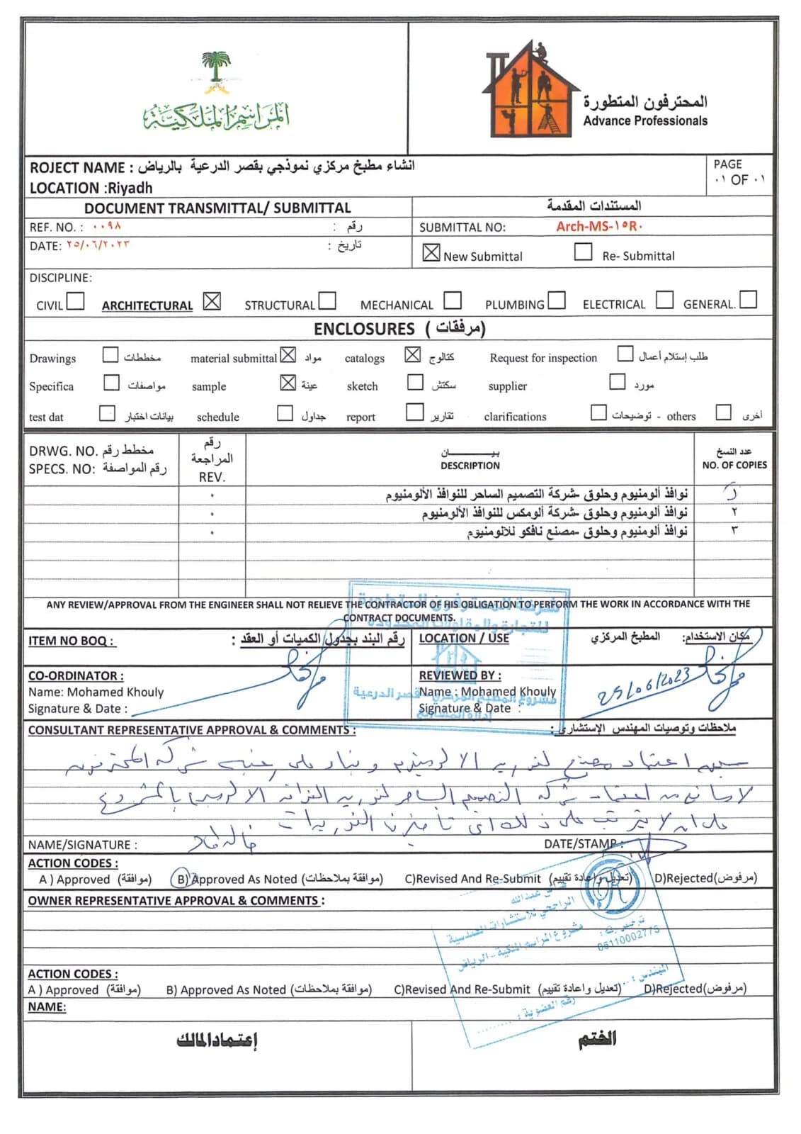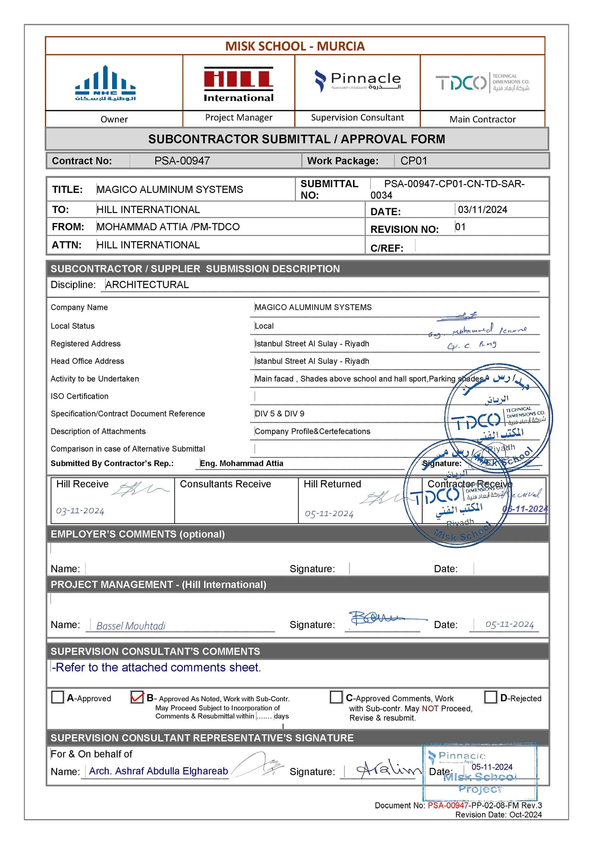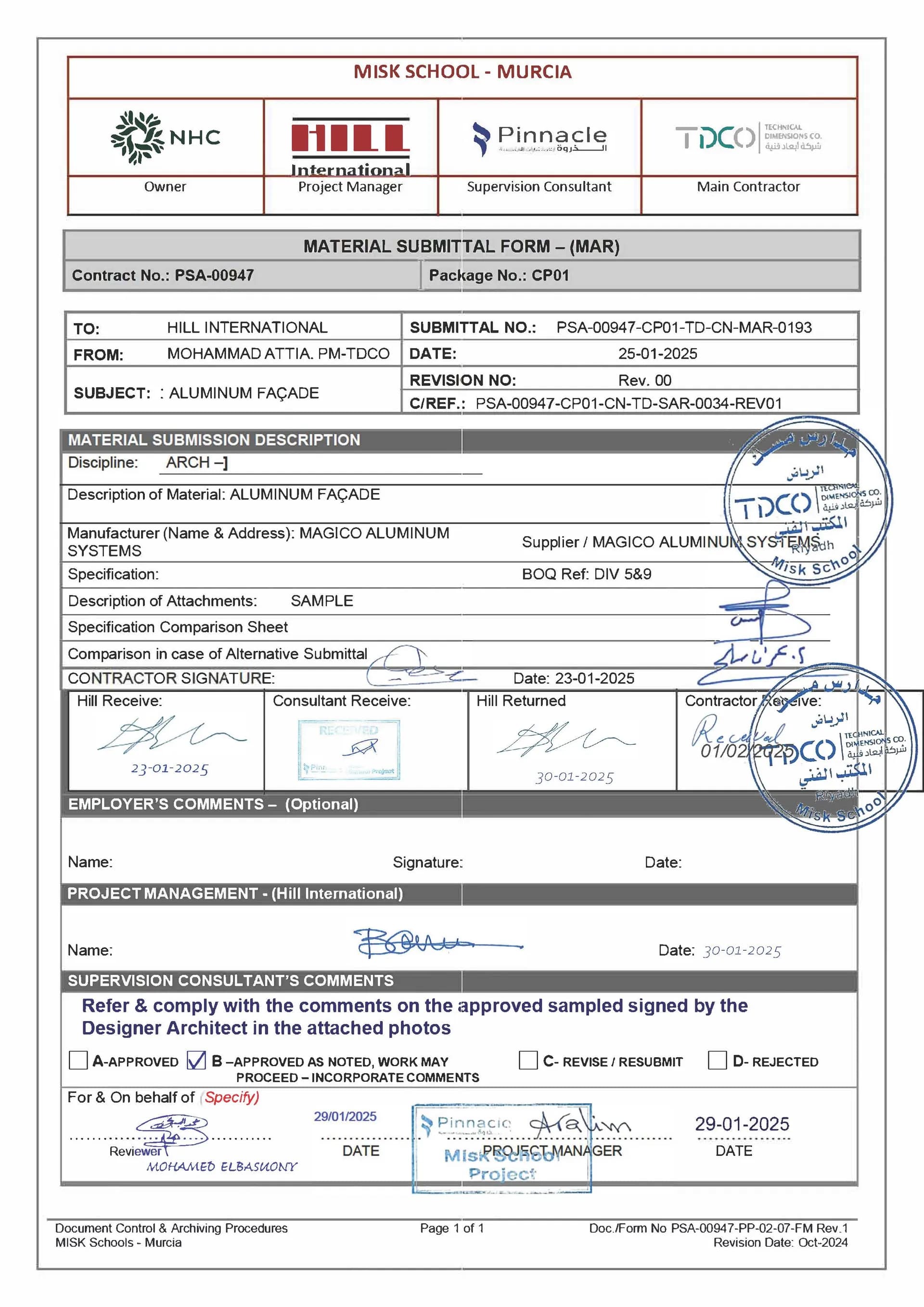 اعتماد مواد واجهات ألمنيوم – مدارس مسك