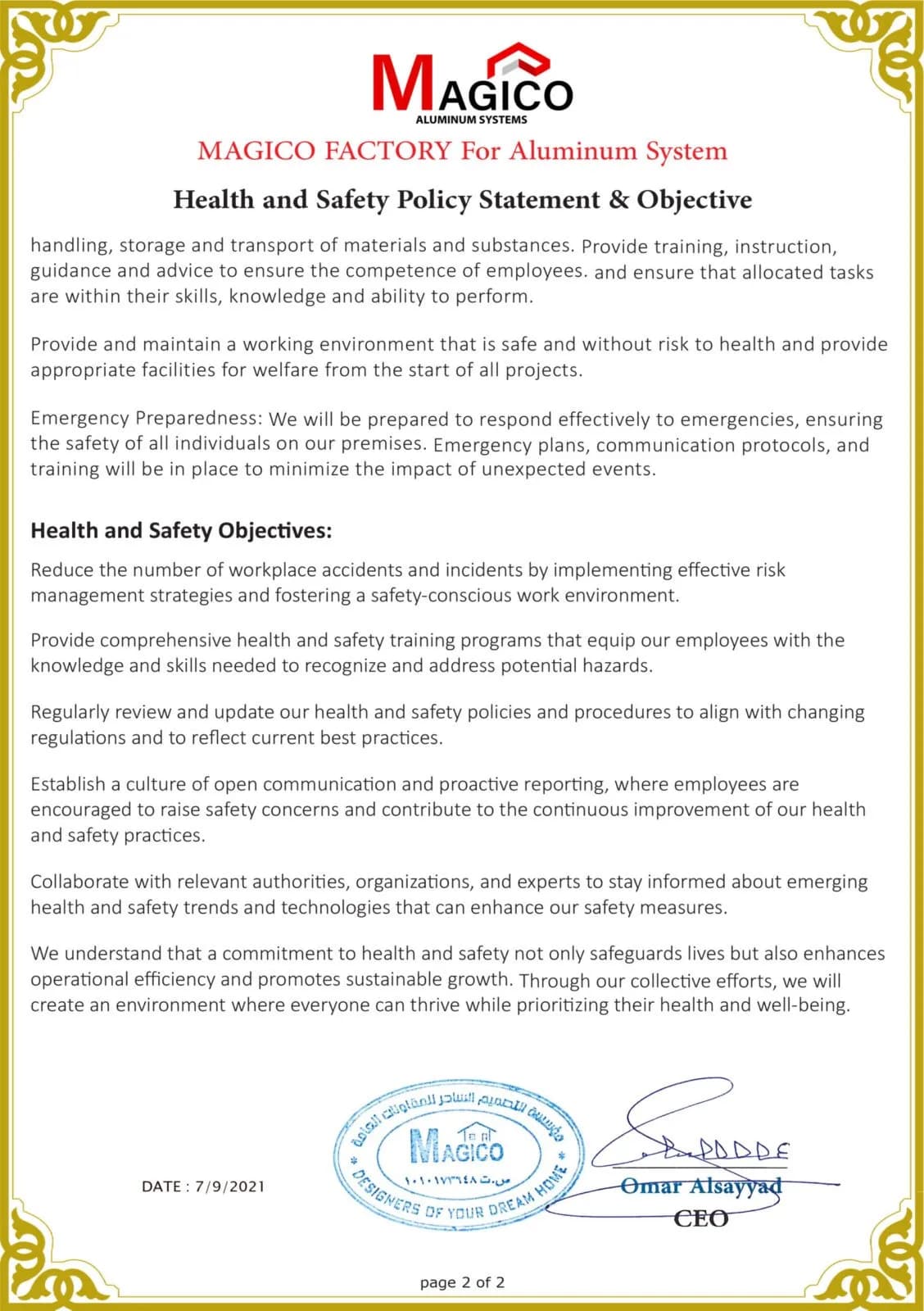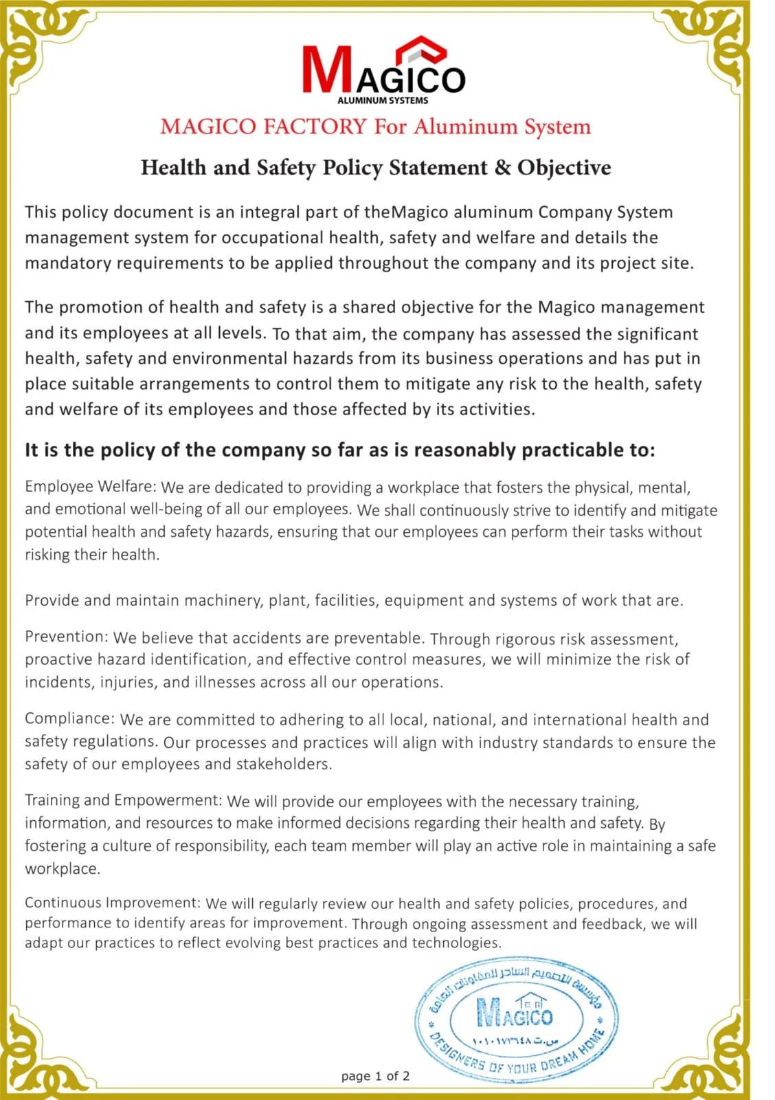 سياسة الصحة والسلامة المهنية – 2